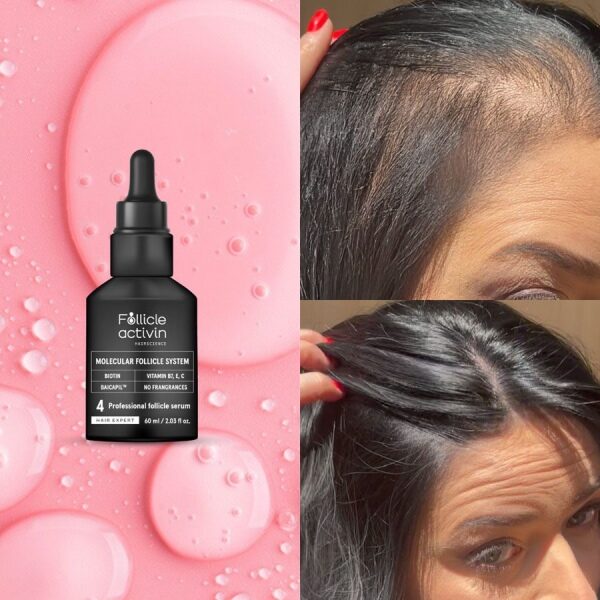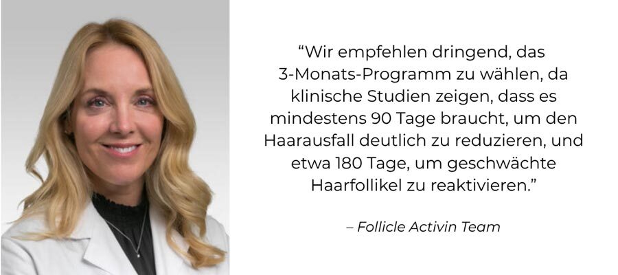 Unser FOLLICLE ACTIVIN Serum wurde von einem Expertenteam entwickelt, mit dem Ziel, Haarausfall und genetisch bedingte Haarausdünnung zu reduzieren und die Aktivität der Haarfollikel zu stimulieren, damit das Haar schneller wächst.