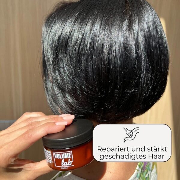 Volume Lab Haarmaske (100 ml): Reiben Sie das Haar über die gesamte Haarlänge. Reiben Sie sanft über das Haar und massieren Sie die Kopfhaut. Drei Minuten halten und dann ausspülen.
